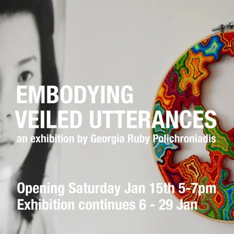 This exhibition is a glimpse into the world of the project, a reverberation of what has already occurred. The accumulation of processes in the project incorporates the elements of social practice, small gestures, the melding of art and life, and the ideas of process versus product, and hidden versus seen. Embodying Veiled Utterances sits within the waters of social practice, both responding to and creating affect.